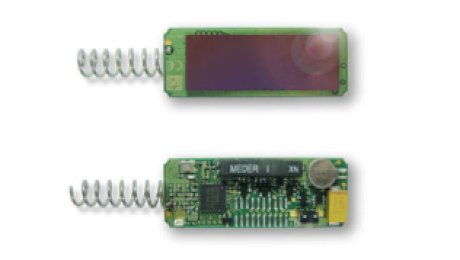 The extremely power saving RF transmitter module STM 429J from EnOcean enables the realization of wireless magnet contact sensors. Powered by a solar cell it works absolutely maintenance-free.